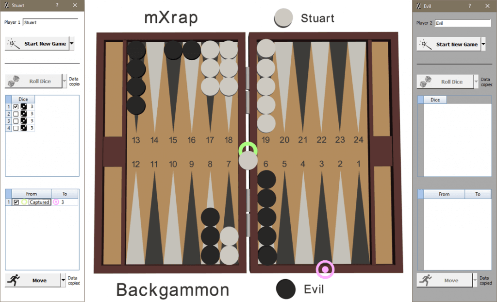 If 2048 is not your cup of tea, how about a spot of backgammon? This is two player and each player rolls the dice and selects where to go from the list of possible moves.