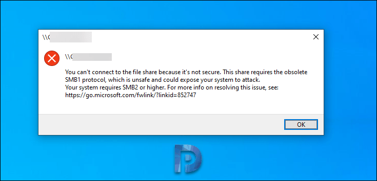 Isso seria relacionado ao SMBv1 - não está mais instalado por padrão no novo Windows. O departamento de TI pode habilitar o SMBv1 ou seguir o procedimento para ajustar o servidor na seção anterior - o "client min protocol = SMB2" é o parâmetro-chave para este erro específico.