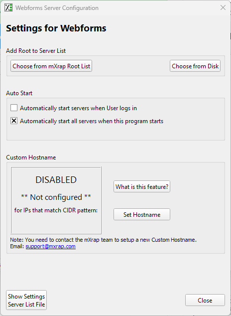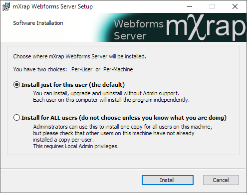 - The mXrap Webforms Server is currently not running (close it before proceeding)