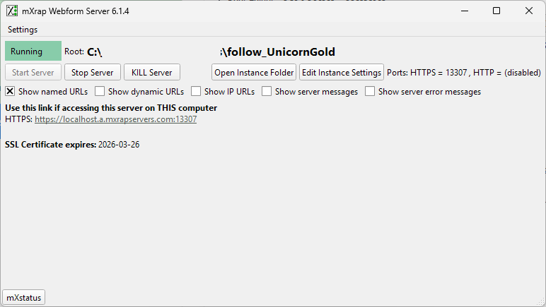 - Verify the mXrap Webforms Server program is running (check the main window)