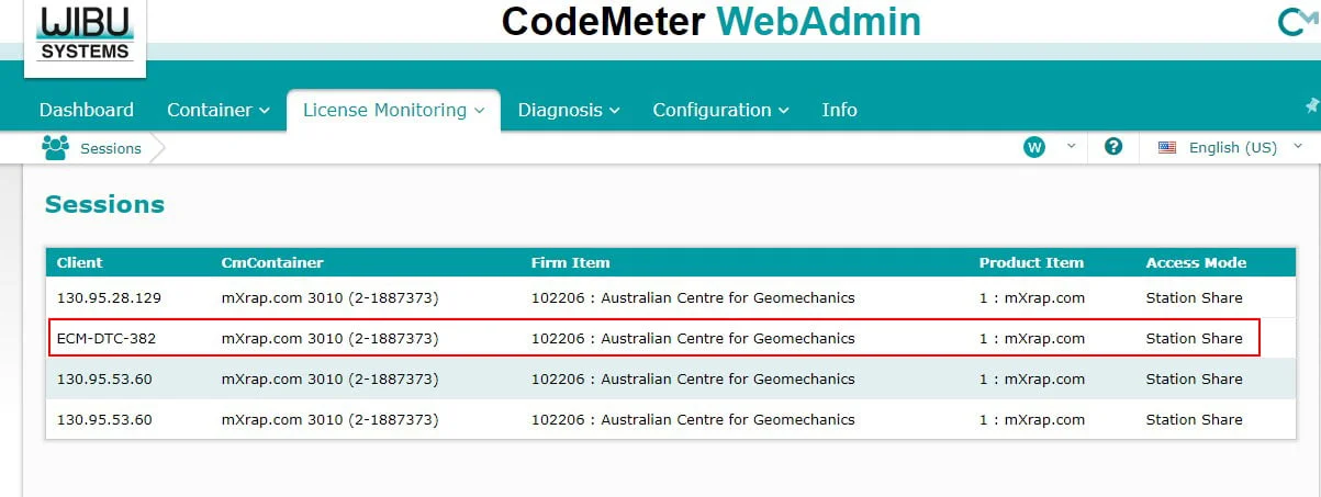 2. Go to Licence Monitoring -> Sessions. This will allow you to see who has a session open. Click on the client that you want to remove.