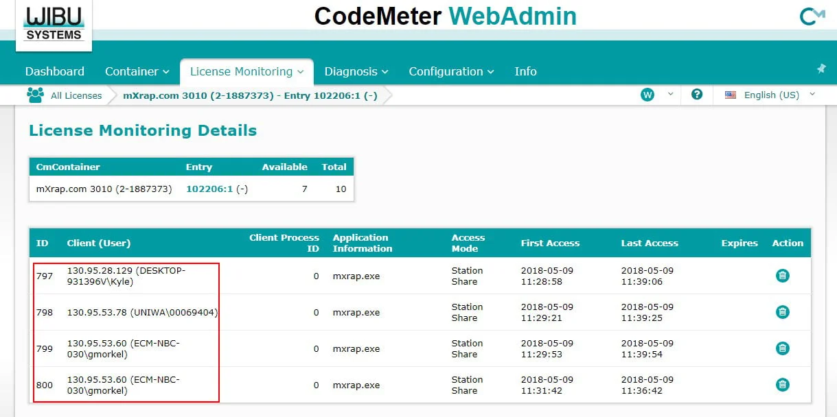 1. This will open the Licence Monitoring details page. From here you can see how many licences you have total, and how many you have total.